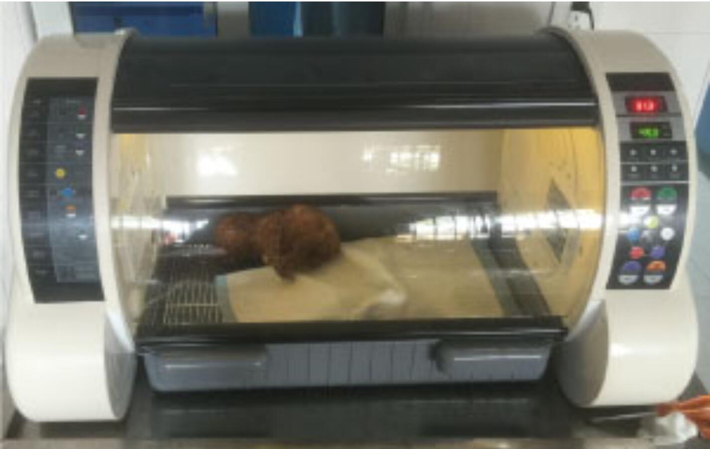 Our pet icu incubator is a newly developed pet ICU and young pet incubator, this moderately sized piece of pet medical equipment will easily fit into most veterinarians’ practices and pet hospitals. Its characteristics and compact structural design functions perfectly server its purpose. The mechanism adopts “dual duct and double circulation convective thermal regulation” to create an excellent and bacteria-free therapeutic environment and young pet incubation environment similar to that provided pet parent (accompanied by purified air and proper temperature and humidity control).