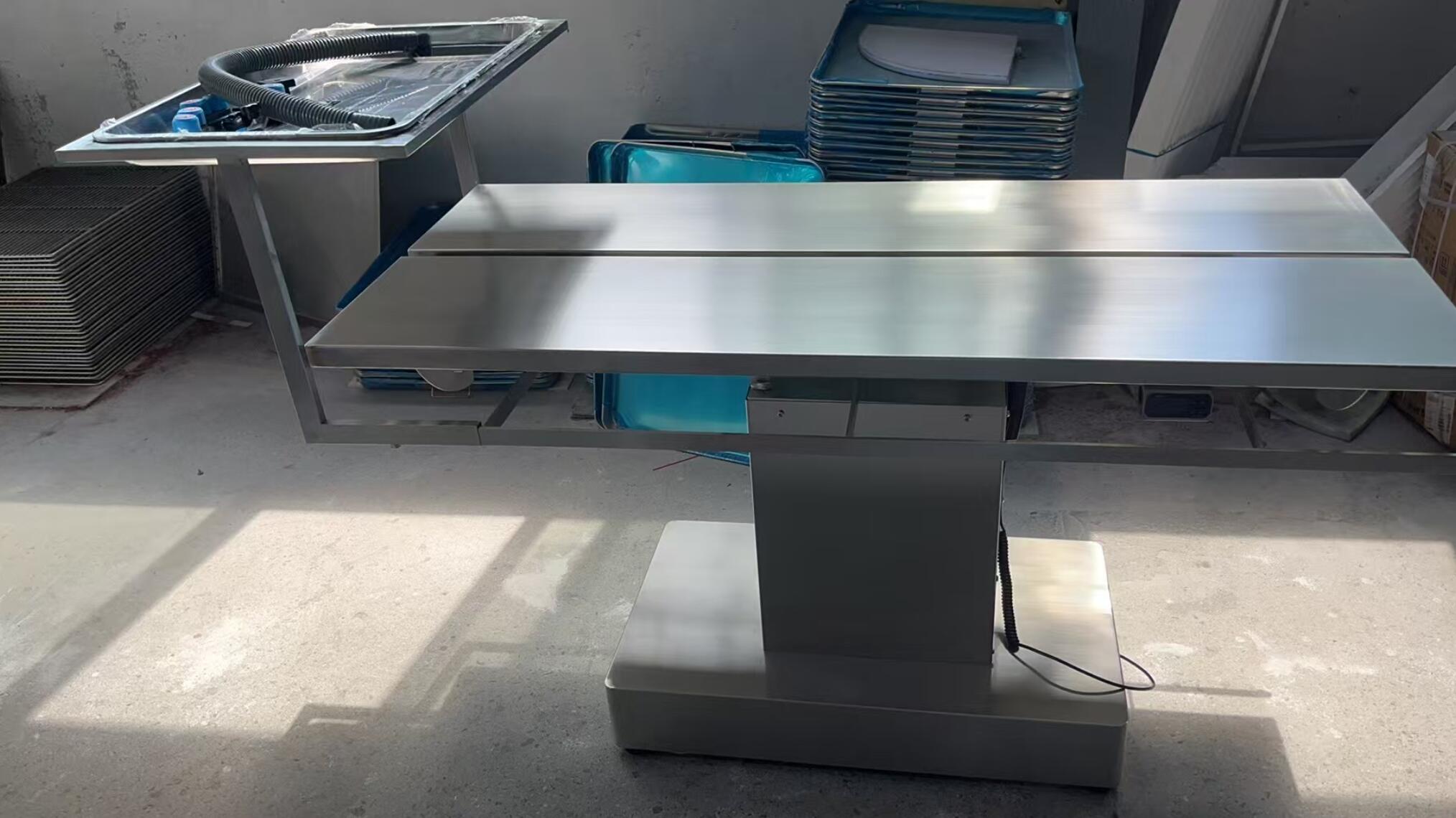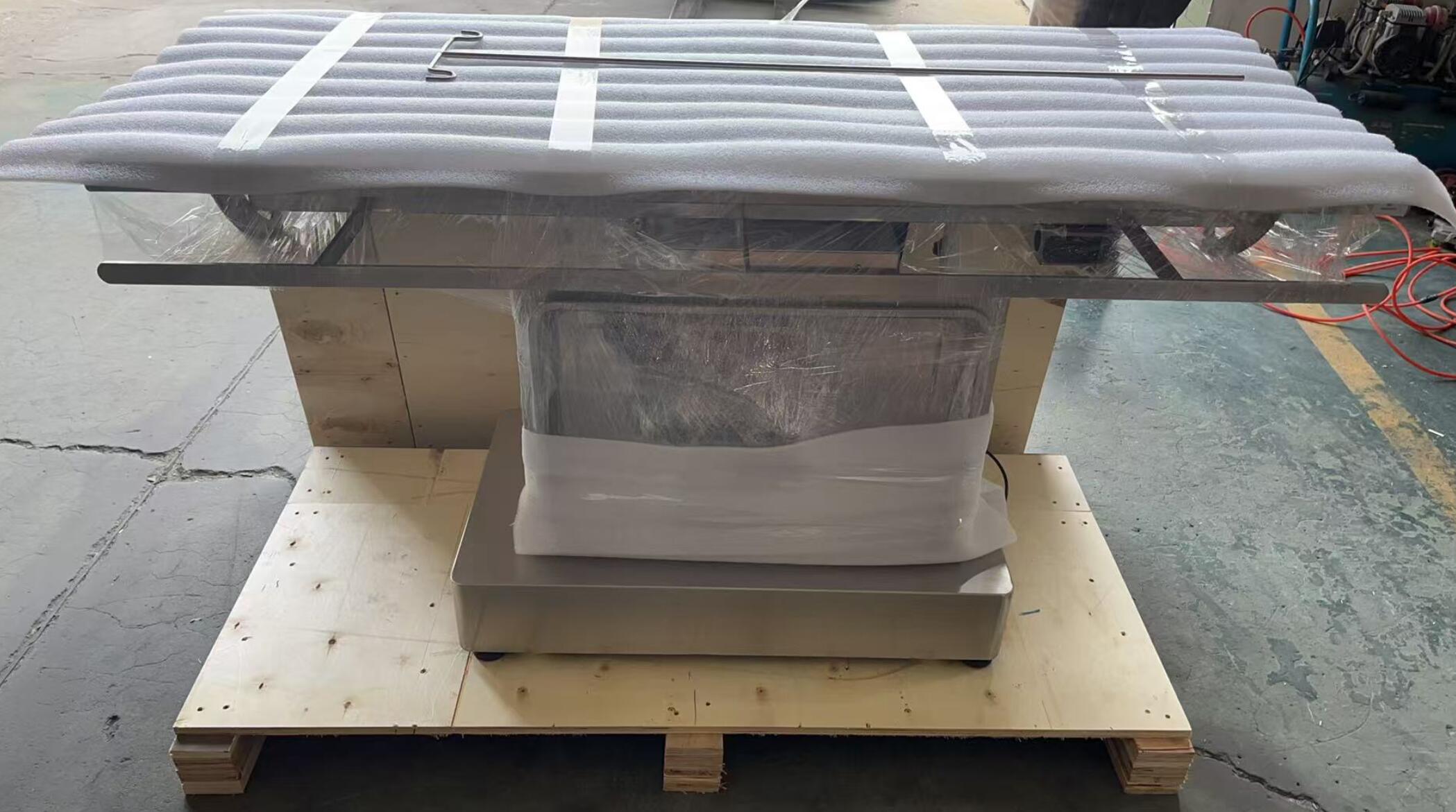 Vet Electric V-Top Surgical Table 1.Table height:760-1060mm 2.Table dimension:1400*650mm 3.Table gradient :±15° 4.Adjustable angle of table board:0°-45° 5.The range of temperature:0°-50° 6.Power:220V